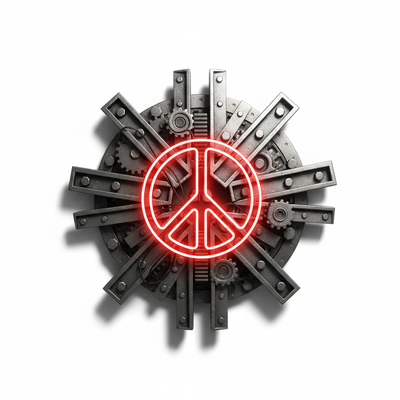 At Peace Graphic Design T-Shirt - Metallic Peace Sign with Metal Starburst Graphic Design Tee